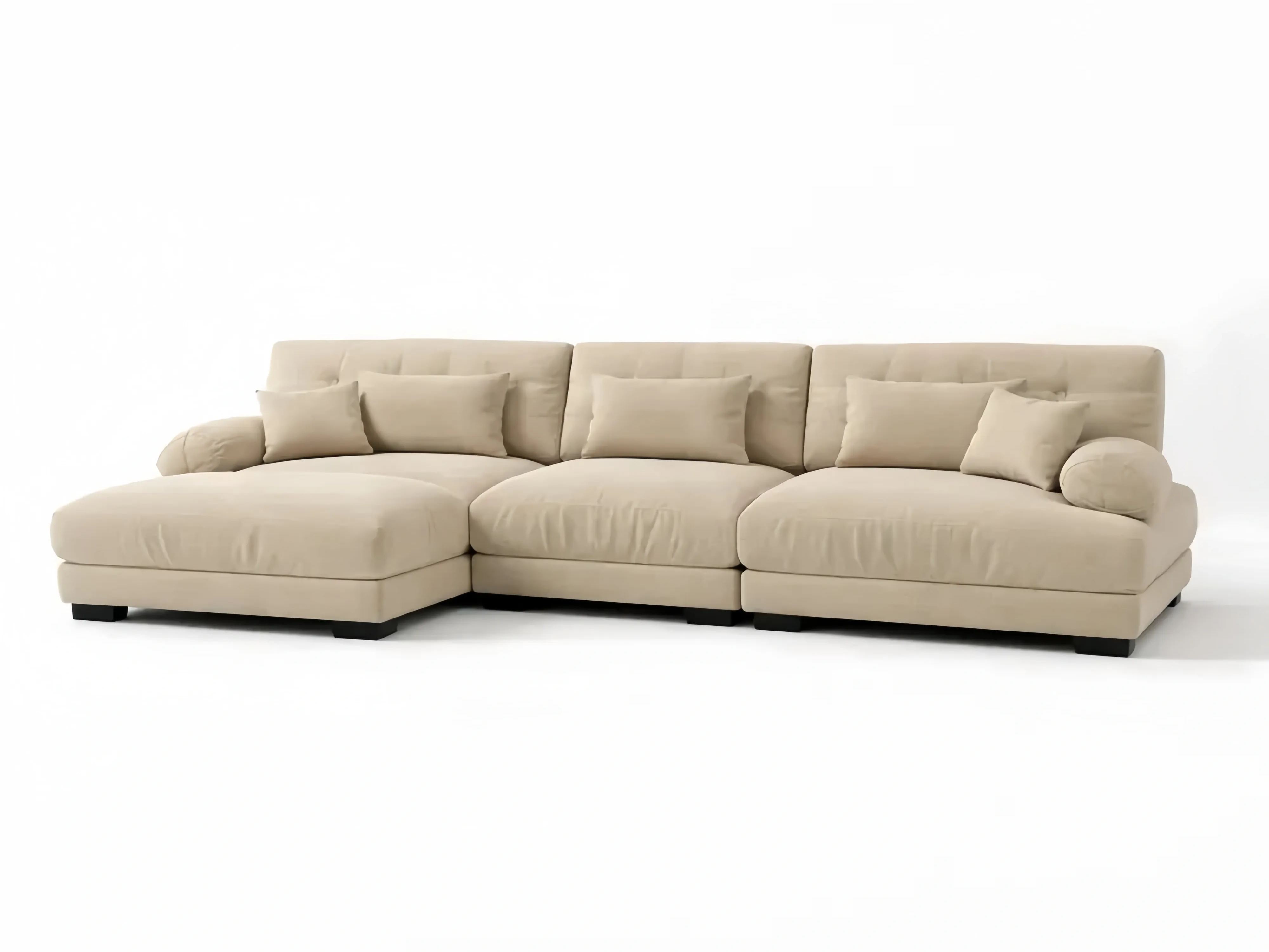 Divano Angolare Modulabile con Pouf, Marrone Chiaro, 3 Posti